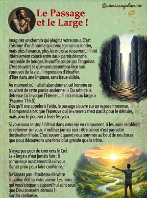 Le Berger lui sourit et chuchota : « Écoute mon sifflement. Pose tes pas là où j'ai laissé mon empreinte. »